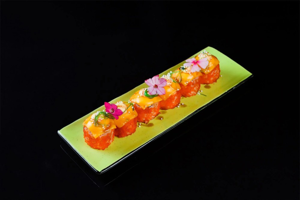 Сурими теңіз шаяны, тобико, чеддер ірімшігі, чука, авокадо, қияр, нори, жапон майонезі, суши күріші және ірімшік тұздығы