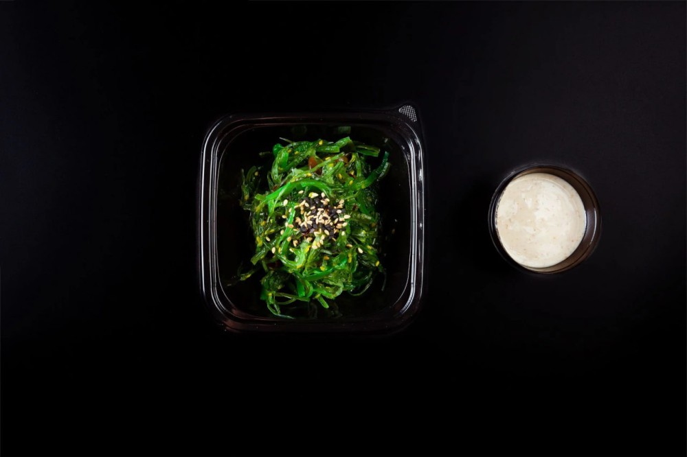 Чука теңіз балдырлары, жаңғақ тұздығы және күнжіт