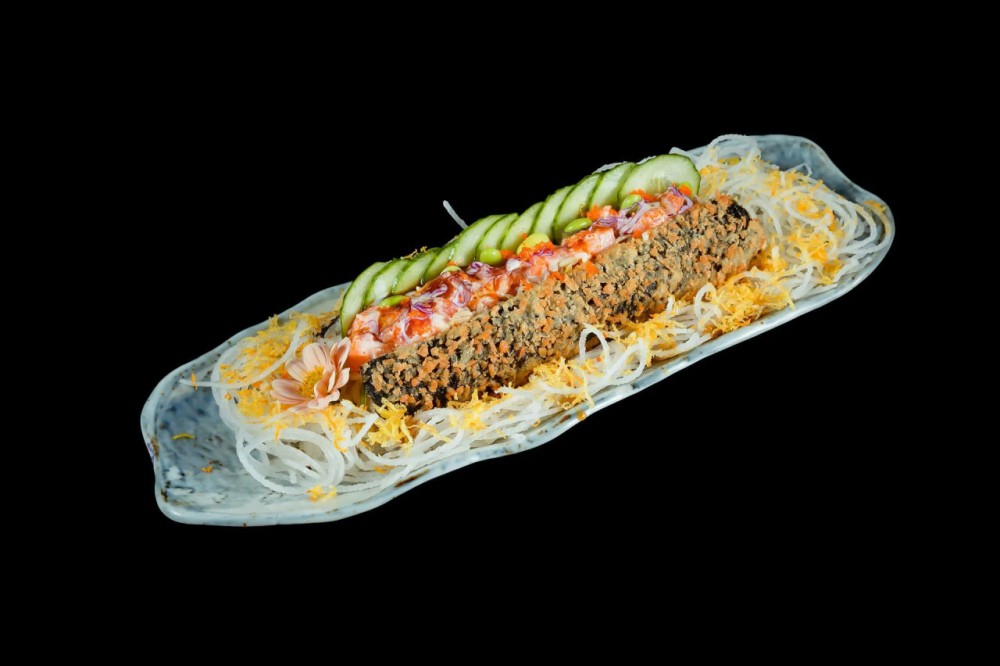 Ақсерке, чука салаты, сурими теңіз шаяны, қызыл қырыққабат, эдамамэ бұршағы, тобико, суши күріші, қияр, нори, цезарь және унаги тұздықтары