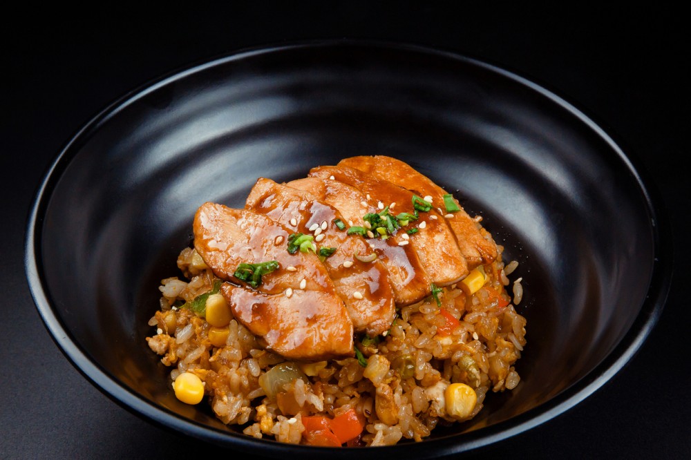 Куриное филе, шинаки, кабачки, репчатый лук, яйцо, растительное масло, зелёный лук, соевый соус, кунжутное масло, семена кунжута.