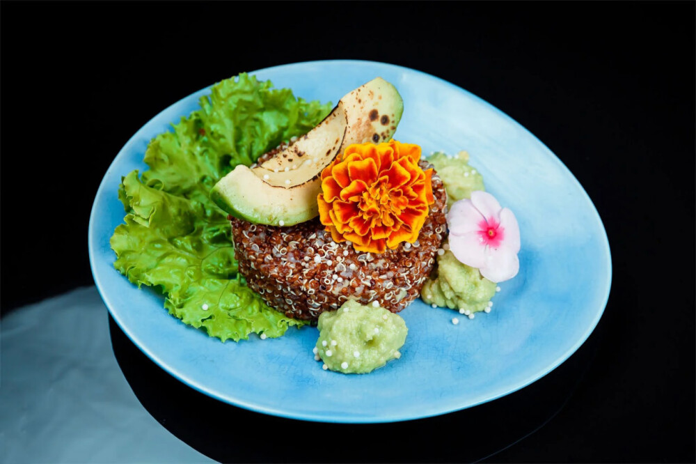 Киноа, авокадо, листья салата, сол лимона и оливковое масло